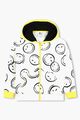 Marc Jacobs Kids Sweatshirt with smiley face print in ivory white/black/canary yellow cotton classic hood front zip fastening long sleeves two front kangaroo pockets straight hem