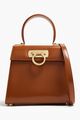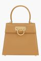 Small top handle bag in brushed-off calfskin with a gold Gancini clasp. Iconic Top Handle bag is a re-release of one of the Ferragamo brand’s best known styles and it embodies the many facets of the female essence. Its extremely versatile size makes it the perfect companion for any occasion. A) Height 18.0 CM B) Length 20.5 CM C) Width 10.0 CM Strap length: 19.6 in/50 cm Handle drop: 3.9 in/10 cm Composition: brushed-off calfskin Color : Camel Made In ITALY