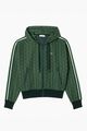 Enjoy truly iconic style with this monogram hoodie, featuring contrast stripes on the sleeves. A signature piece blending urban styling and Lacoste expertise. - Adjustable hood - Regular fit, straight cut - Zip closure - Ribbed cuffs - Embroidered crocodile on chest Care Instructions: • GENTLE PROCESS T Max 30 • DO NOT BLEACH • DO NOT TUMBLE DRY • IRON MAX SOLE-PLATE T 110 • DO NOT DRY-CLEAN • LINE DRY