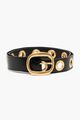 Gold-colored buckle closure. Variable fit. Pre-cut holes.