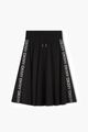 Black skirt for girls by DKNY. Made from lightweight chiffon with a smooth viscose lining. It has the brands logo in embellished studs on the side. Finished with an elasticated drawstring waist for a comfortable fit.