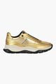 Gold slip-on trainers by luxury designer MARC JACOBS, featuring an elasticated band over the foot with the jumbled brand logo print in black on the tongue and the brand name on the heel tab. These trainers are designed with non slip black rubber out soles and are lined with a moisture absorbing and heat regulating fabric for added comfort.