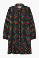 This shirt dress with a flounced hem is crafted from stretch viscose crepe-cady with a Falling Flowers motif. It fastens with buttons featuring the raised Medusa '95 logo.