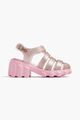 Downsized for your mini-me, Melissa's Megan sandals are modern and daring and reimagine the classic fisherman silhouette with a chunky, treaded sole and block heel to add a dynamic touch to your little one's look. This sweet-smelling pair features the signature bubblegum scent and a durable, flexible and hypoallergenic MelFlex upper and sole, cushioned insole, and an adjustable buckle strap. | SKU: 33981-AQ438 | Pink Other | Heel height: 5cm | Made in: Brazil | Fits true to size, take your normal size