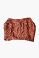 Concealed side zipper. Corset-style bust. Gathered back panel. Pleated satin fabric.