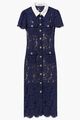 NAVY LACE CONTRAST COLLAR MIDI DRESS