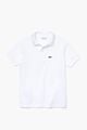 Cotton pique. Regular, straight cut. Two-button polo collar. Ribbed finish on collar and sleeves. Embroidered crocodile on chest.