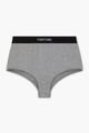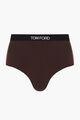 High-waisted fit with an elasticated waistband. Features a white Tom Ford jacquard logo label on the front of a black ribbed band.
