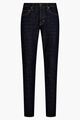 Slim-fit or flared denim jeans. Classic five-pocket styling. Button fly fastening. Logo patch on the rear waistband. Selvedge denim construction.