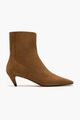 Crafted from Eco Alter Suede, the Spur boots by Stella McCartney are a standout example of sustainable fashion. They feature a side zip closure adorned with the signature medallion charm and are set on a sculptural pyramid kitten heel.
