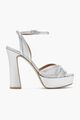 Reach new style heights this season with the evening-ready Sylvie 125 sandals from Malone Souliers. Crafted from metallic mesh with metallic nappa leather detailing, these pumps boast a chunky heel, a supportive front platform, and an adjustable ankle strap for a perfect, tailored fit. | SKU: SYLVIE125-2-SILSIL | Silver Mesh | Closure: Buckle fastening | Toe style: Almond-toe | Hardware: Silver-tone hardware | Heel height: 12.5cm | Platform height: 3cm | Made in: Italy | Fits true to size, take your normal size