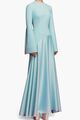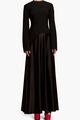 The Storm is a long sleeved floor length gown with softly flared trumpet sleeves and a contrasting drop waist.