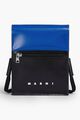 Small shoulder bag. Single compartment with flap. Frontal zippered pocket. Slot pocket on the back. Detachable and adjustable nylon strap. Printed Marni logo. Palladium hardware. Made in Italy. Made in Italy Body: 64% Polyurethane 36% Polyester Contrast: 100% Polyester Inside: 64% Polyurethane 36% Polyester Metallic Parts: 100% Steel Metallic Parts: 100% Brass