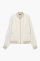 Stand-up collar. Long sleeves. Front zip-up closure. Side pockets. Ribbed trims.