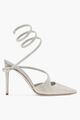 Updated with crystal bow embellishments, these sandals feature a leather insole, glittering outsole, and a stiletto heel.