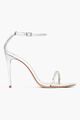 We consider these crystal sandals by Schutz a wardrobe classic! Made from leather, they feature a slim strap with crystals and a PVC base, a stiletto heel, and an ankle strap with buckle fastening.