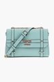 Flap and button fastening. Pale gold-coloured hardware. Zipped inner and outer pocket. Double compartment on the inside.