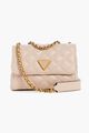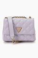 This crossbody bag features quilting for a sophisticated feel. The chain-like strap is adjustable in length, allowing you to shorten it and use it as a shoulder bag. The interior has double compartments for excellent storage capacity.