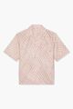 Closure: buttoned placket. Collar: Cuban. Pockets: breast pocket. Short-sleeved shirt.
