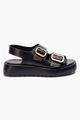 Calfskin leather upper. Straps with branded metal buckles. Padded insole. Rubber outsole with embossed detailing.