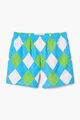 These Argyle print swim trunks blend athletic details with expert construction, showing French sporting elegance at its finest. Cut to hit just above the knee for a chic look, with three pockets, a mesh lining for freedom of movement, and quick-drying fabric for comfort.