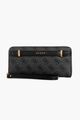 Zip Closure. All Over Embossed Design. Front Gold Logo.