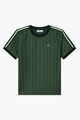 Organic cotton and recycled polyester. Slim fit, adjusted cut. All-over jacquard monogram motif. Logo stripes on shoulders and sleeves. Embroidered crocodile on chest.
