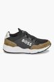 Made from leather with mesh trims, they feature a slip-on design with the brands logo and signature trim in a black, white, and beige striped print across the front. The trainers have an elasticated band over the foot and a pull tab on the heel tab.