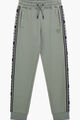 With elastic at the waist and ankles for size adjustment. Zippered pockets on the side and back. Logo-tape band on the side. Made of organic cotton.
