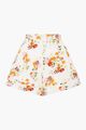 Linen blend. Floral print. Elasticated waistband. Front button and zip fastening. High-waisted.