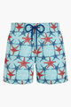 Embroidered fabric, numbered limited edition. Swimwear with elastic waistband with drawstring and silver tips. Side pockets and back pocket with Turtle personnalized round snap button. Men swim shorts with two back eyelets.