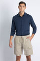 Elastic waistband with drawstring. 2 side pockets. 2 cargo pockets. Back pocket with flap.