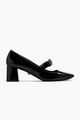 These Versace Gianni Ribbon pumps are crafted in glossy patent calf leather with a smooth leather lining and sole. The chunky block heel is paired with a sharp square toe for a strong look that will take you from desk to dinner with ease.