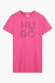 Jersey texture. Logo print to the front. Rhinestone embellishment. Straight hem.